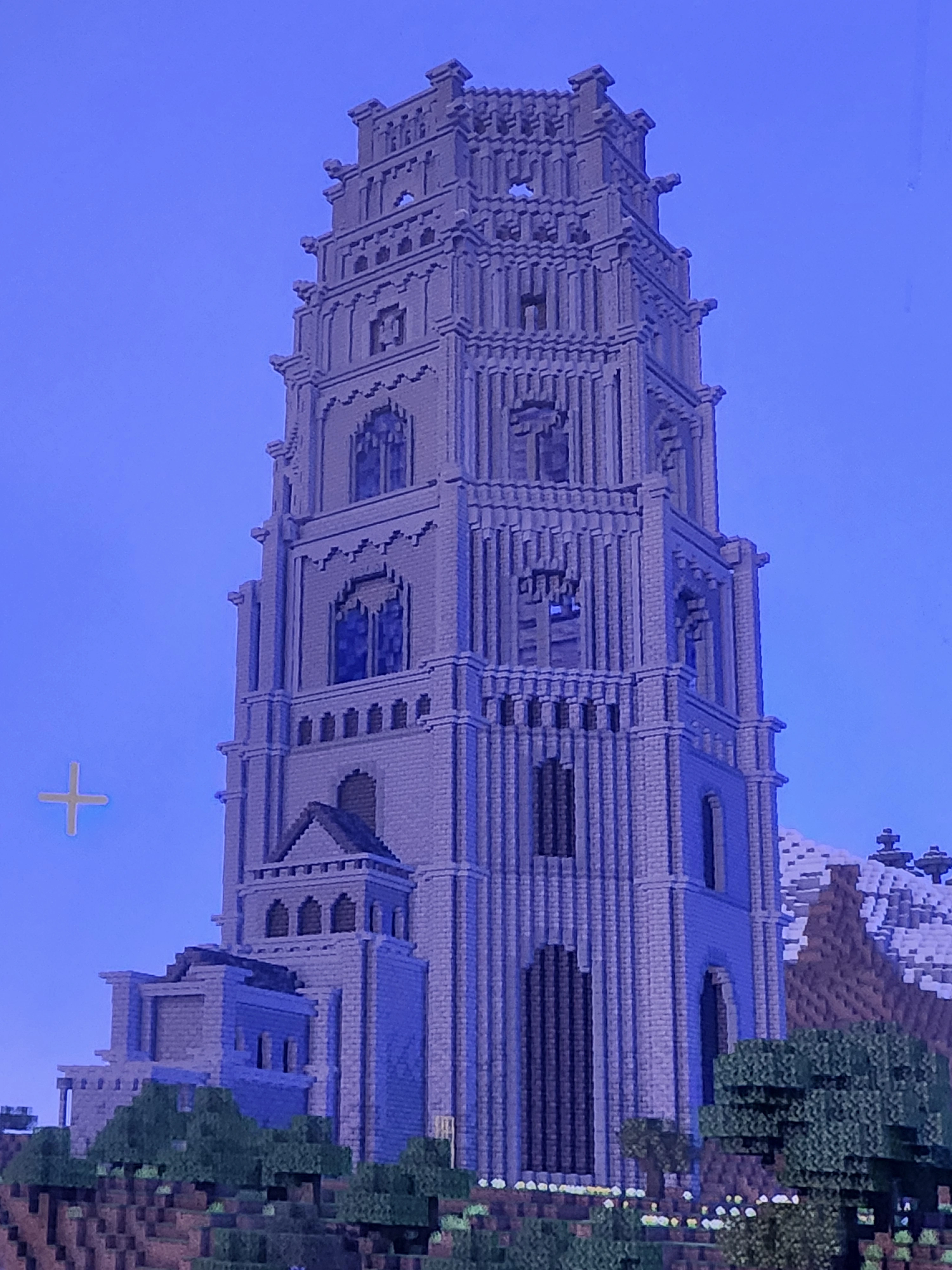 The smaller tower of the Divine Tower in Liurnia (Elden Ring) built in solo modded survival.
